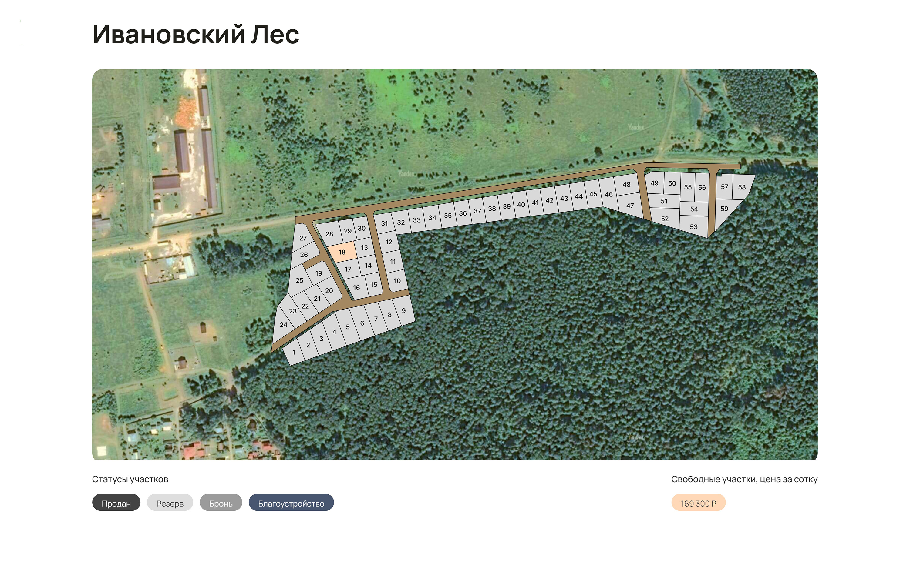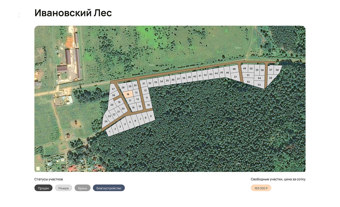 Коттеджный поселок всего на 60 участков на юге и востоке примыкает к лесу, а на западе граничит с большим селом Ивановское, где вы найдете супермаркеты, детский сад и школу, ДК, спортивный центр, аптеку и кафе. Участки ИЖС позволяют построить в Ивановском лесу дом для постоянного проживания. В пешей доступности от села и поселка красивый водоем - озеро Глубокое, где можно купаться, рыбачить или просто прогуляться в жаркий летний день.